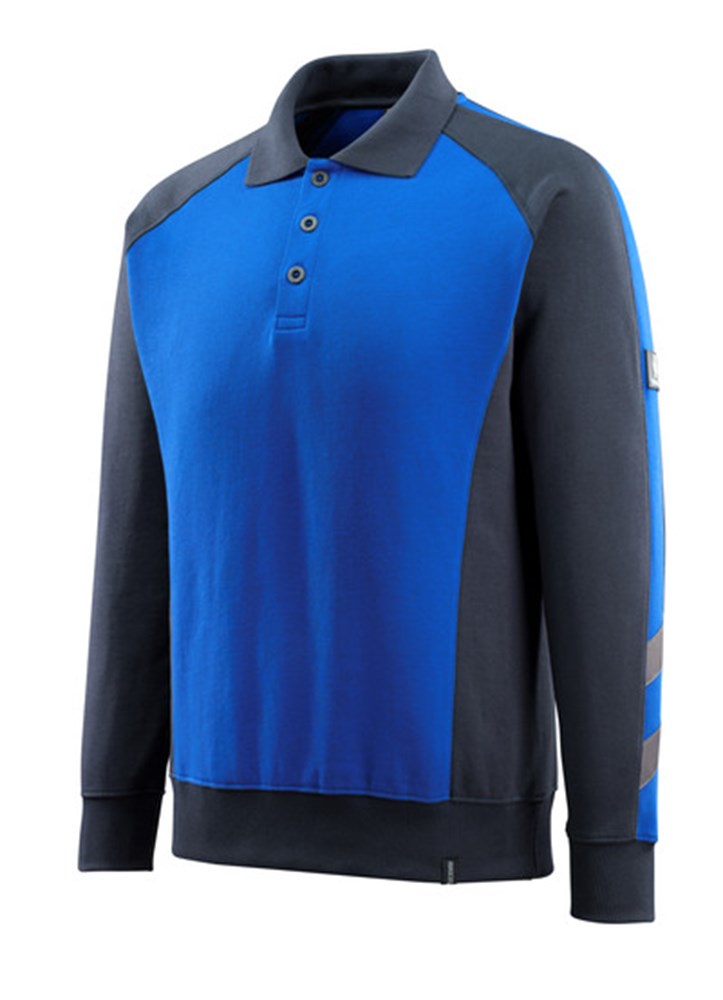 Tweekleurig. Gekamd katoen. Gekamde binnenkant. Moderne pasvorm. Tricot in de kraag. Deelbare rits. Voorzakken. Tricot aan de onderkant en bij de pols. Versteviging in de nek.